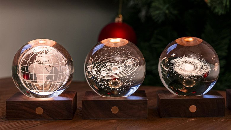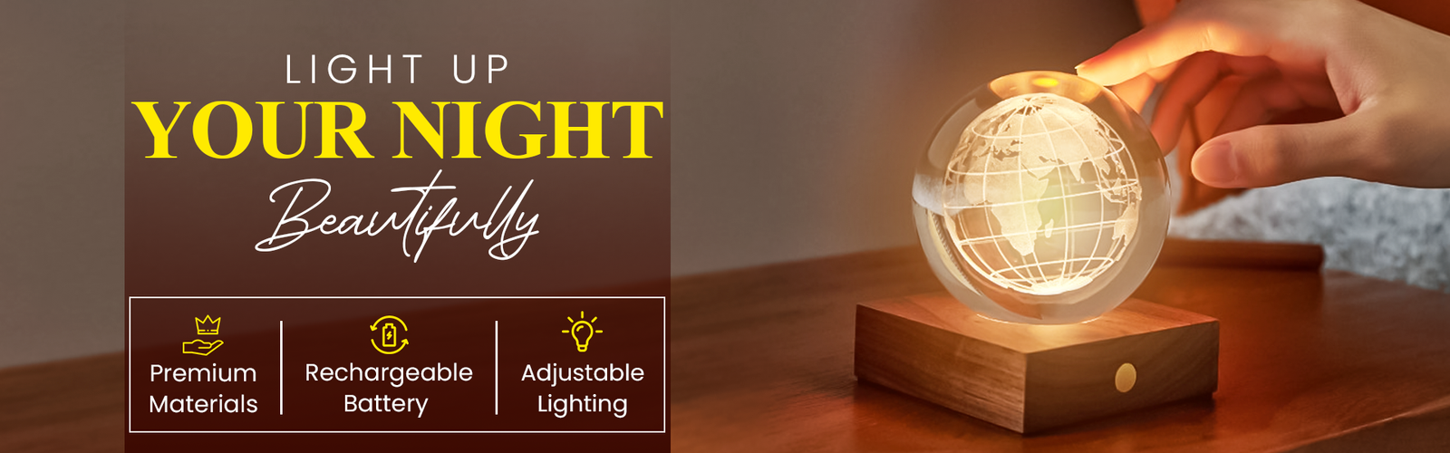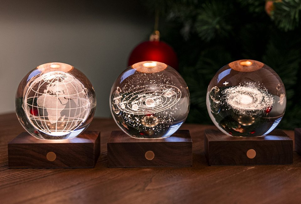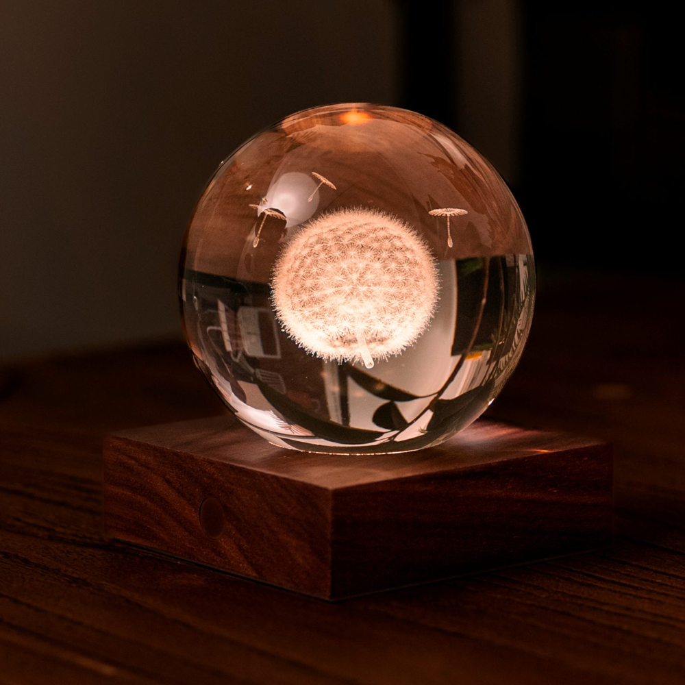 The Fern Crystal Ball Night Light Collection is designed to add magic and sophistication to any space. Each crystal light features a 3D laser-engraved design within a crystal globe, resting on a premium walnut wood base. With motifs like galaxies, dandelions, and planetary systems, these lights serve as both decor and inspiration. Offering three adjustable light settings, they create the perfect ambiance for relaxation or focus. A rechargeable lithium-ion battery provides up to 96 hours of illumination, with convenient USB-C charging. Compact and versatile, these crystal lights make thoughtful gifts and elegant additions to bedrooms, living areas, or workspaces.