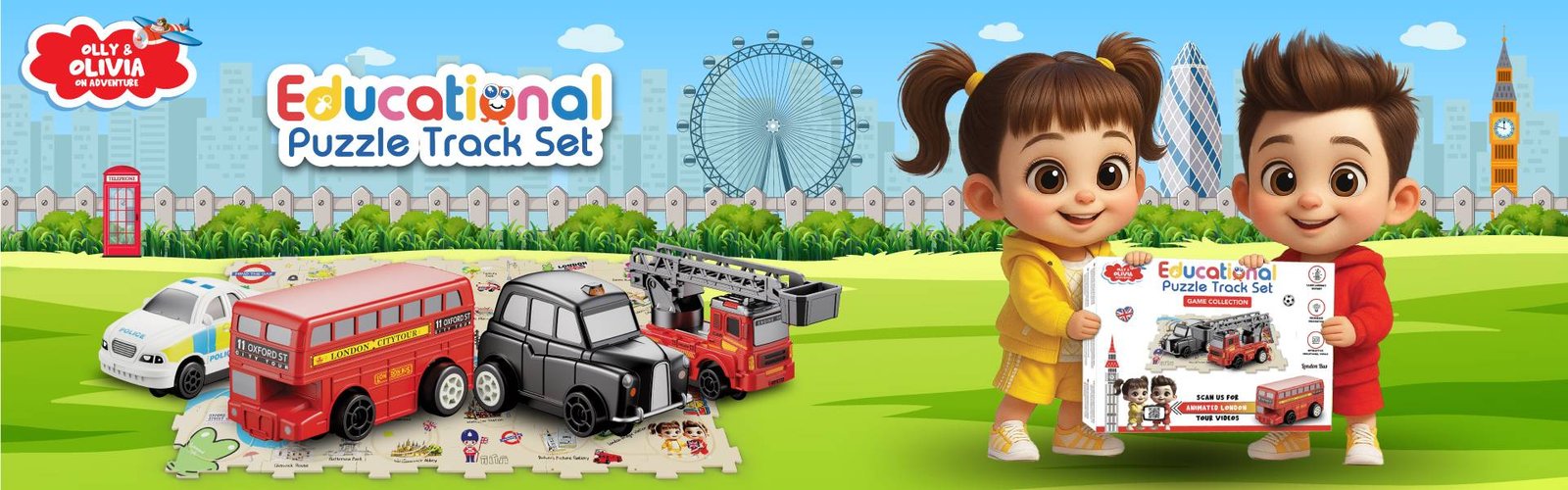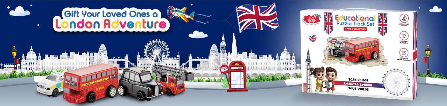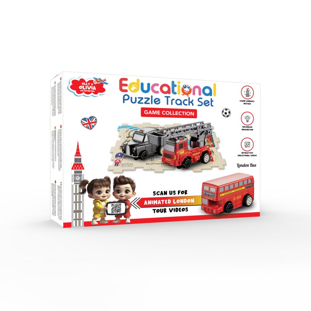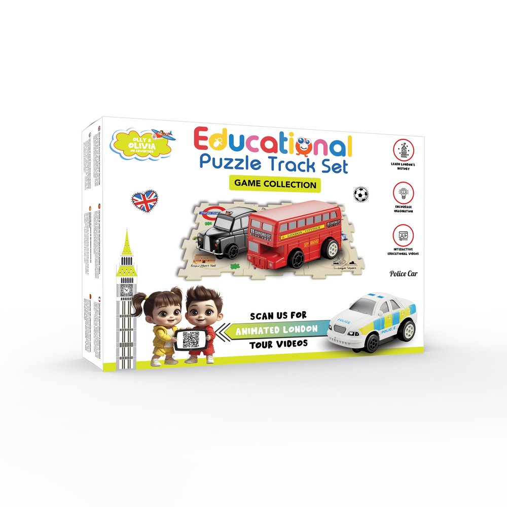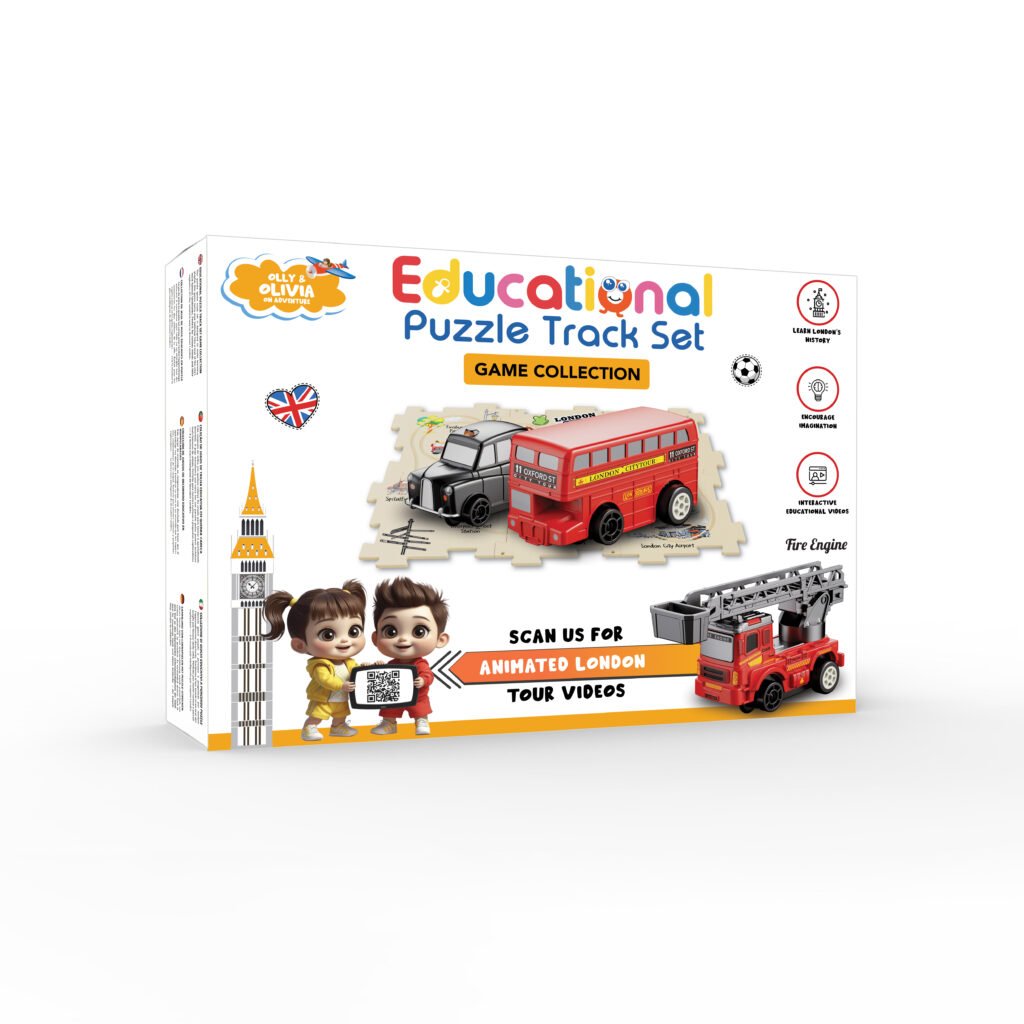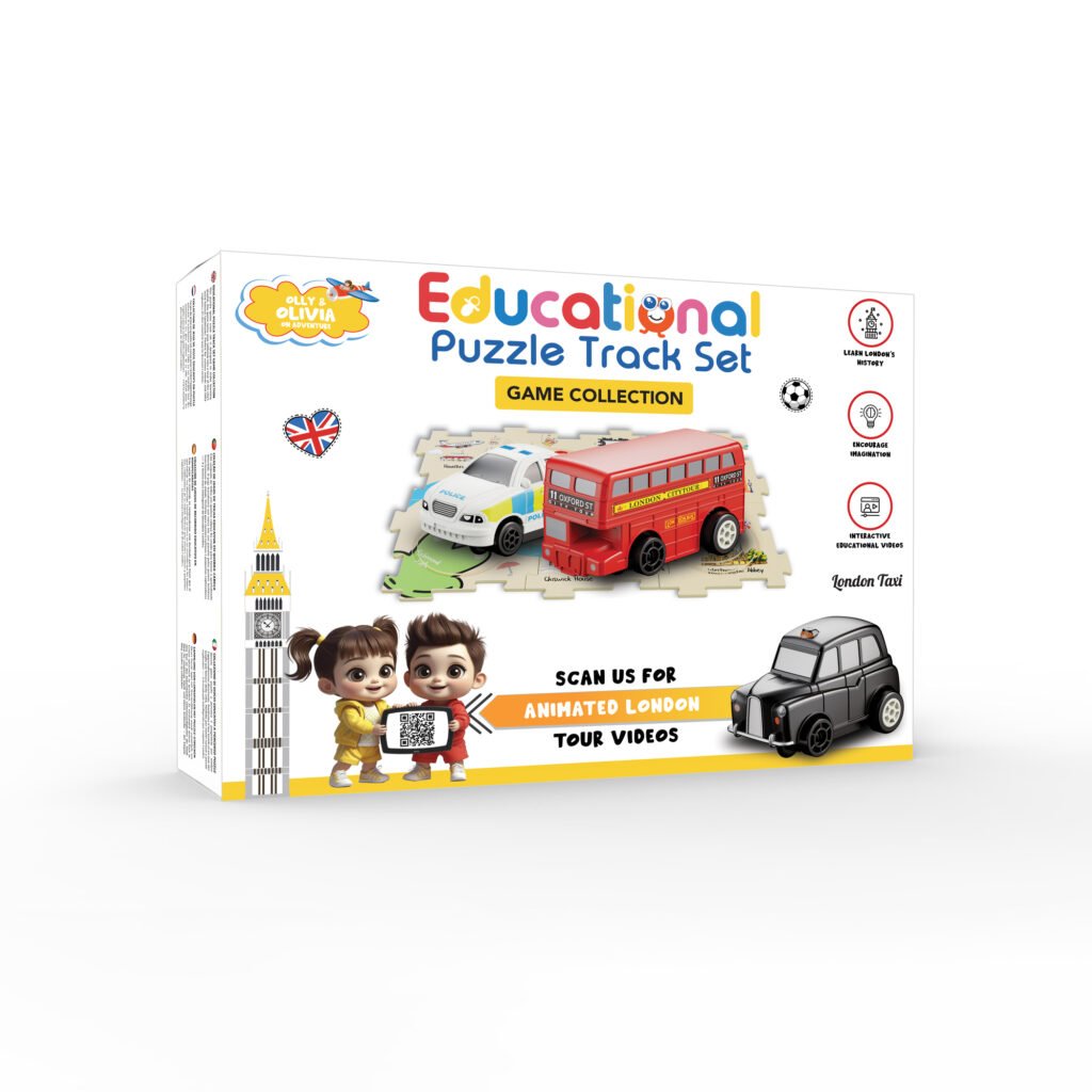 Join Olly and Olivia on a playful journey through London’s iconic landmarks! This engaging puzzle track set combines fun and learning, letting kids piece together a London map, zoom around with mini vehicles, and discover famous sights. Designed to boost memory, observation, and storytelling, it introduces cultural awareness in an interactive way. Kids can also scan QR codes to watch animated videos packed with real-life London facts. With puzzles, vehicles, and a foldout map, children explore, imagine, and role-play as little tour guides. Learning London has never been this fun!