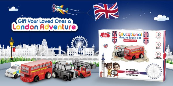 With animated educational videos, children learn London’s history, culture, and landmarks while playing. Collect all four boxes to build the complete London adventure track set and make learning a fun and interactive experience!