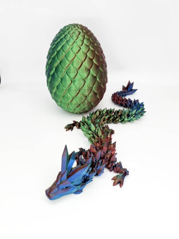 Discover a shimmering two-tone dragon egg housing a flexible, 3D printed dragon. Perfect as a sensory fidget toy or collector’s piece, it offers soothing tactile play and visual appeal. Durable, engaging, and uniquely crafted, ideal for kids and adults alike. A magical addition to any sensory or gift collection.