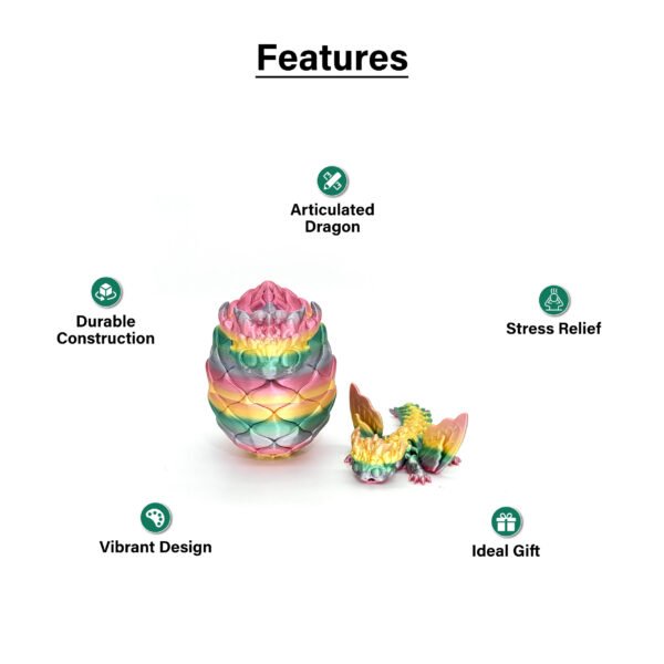 Crafted with high-quality 3D printing, each piece combines smooth movement, vivid colors, and durable construction, making it a perfect collectible or fidget companion. Whether used for stress relief, creative play, or stylish display, this dragon egg sparks curiosity and joy in both kids and adults.